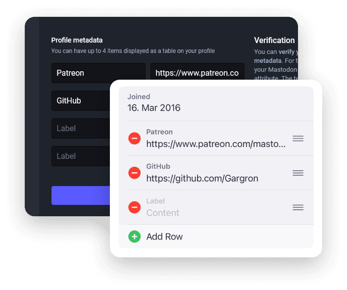 Placera en länk till din Mastodon-profil på din webbplats eller webbsida. Det viktiga är att länken måste ha attributet rel="me". Redigera sedan din Mastodon-profil och sätt adressen till din webbplats eller webbsida i ett av de fyra fälten på din profil. Spara din profil, och sedan är det klart!